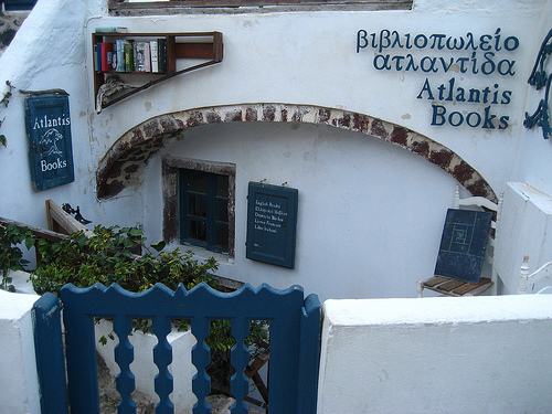 Η φωτογραφία είναι από το βιβλιοπωλείο Ατλαντίς στη Σαντορίνη που έχει ψηφισθεί στα 20 ωραιότερα βιβλιοπωλεία του κόσμου.