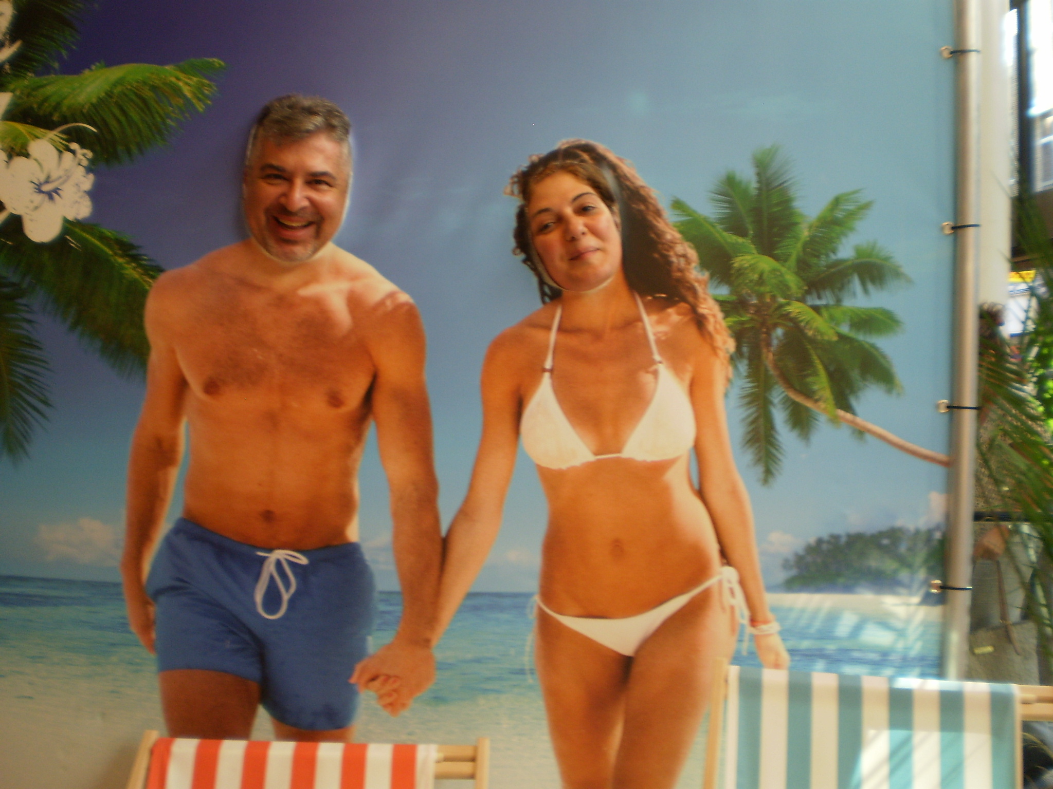 Ο Μ. και εγώ ποζάροντας με πάρα πολλά γέλια, πέρυσι, στο Άμστερνταμ σε μια υπαίθρια κατασκευή για τις «Καλύτερες διακοπές της ζωής σου».