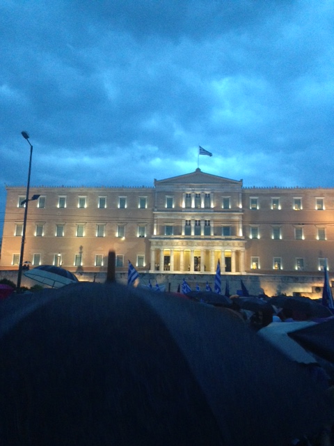 Υπό βροχή βρεθήκαμε χθες στη συγκέντρωση στο Σύνταγμα για το Μένουμε στην Ευρώπη, Ναι στην Ευρώπη, Ναι στο Ευρώ.